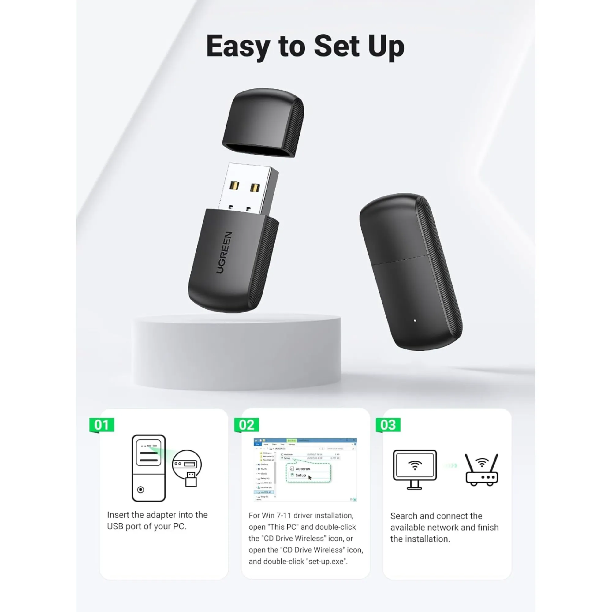 ADAPTADOR USB WIFI DOBLE BANDA AC650*2.4GHz:200Mbps/5GHz:433Mbps*CERTIFICACION :FCC, CE, RoHS, REACH, SRRC